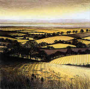 Over the Fields is a limited edition hand coloured etching of 250 on paper, measuring, 6" x 6"’